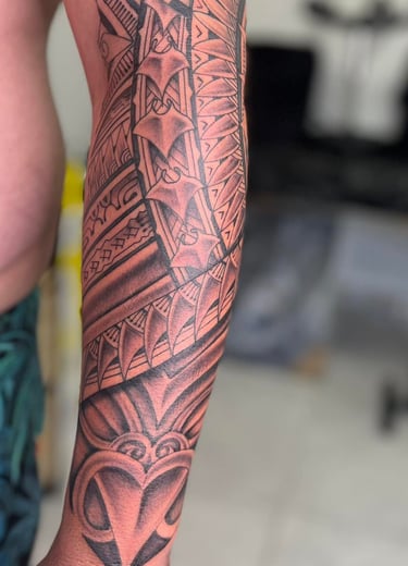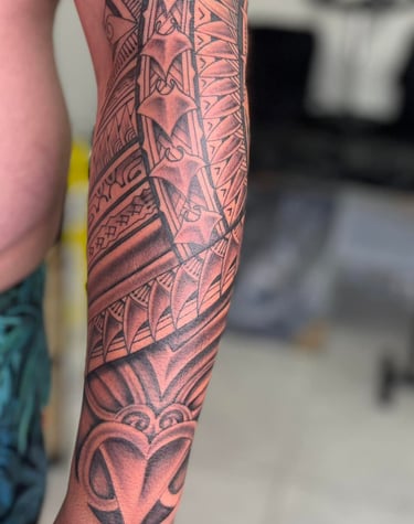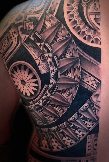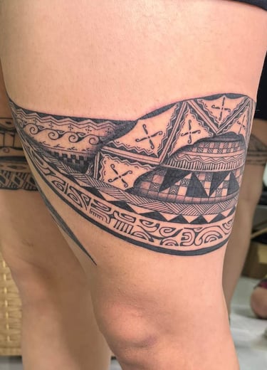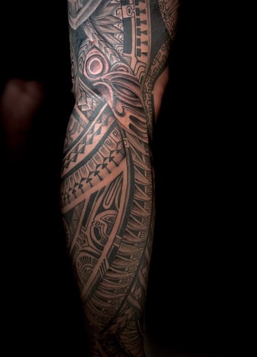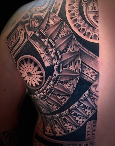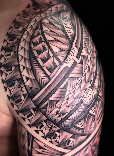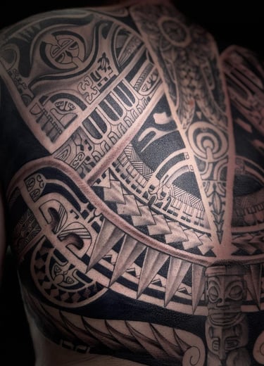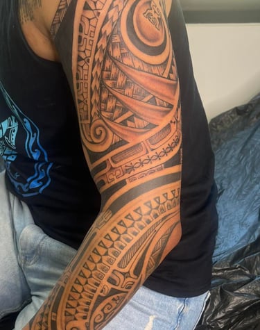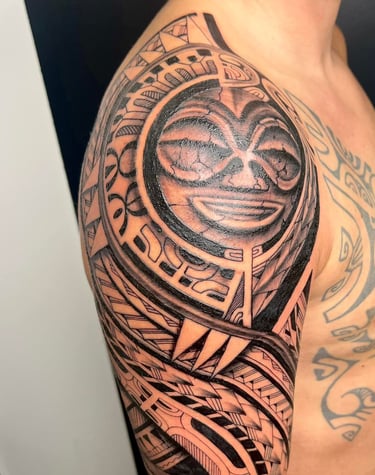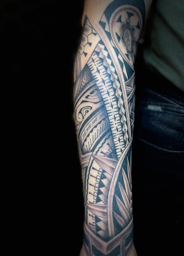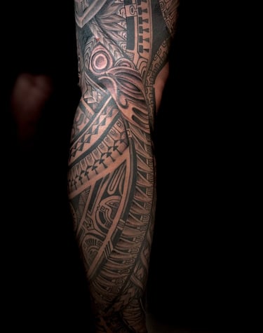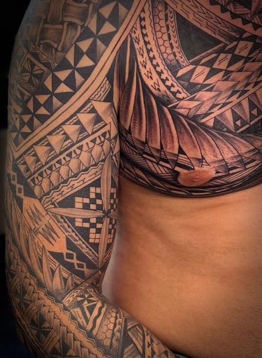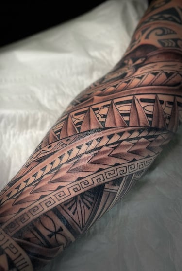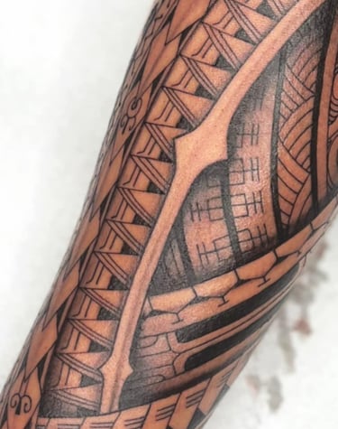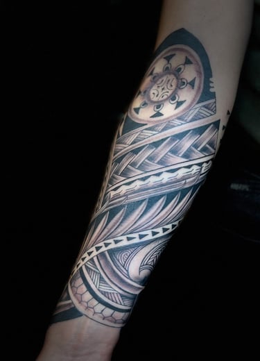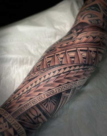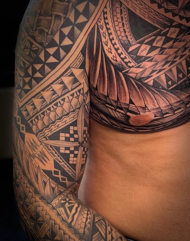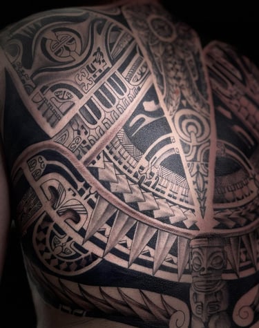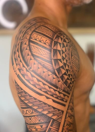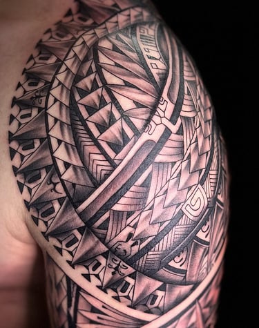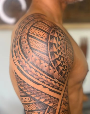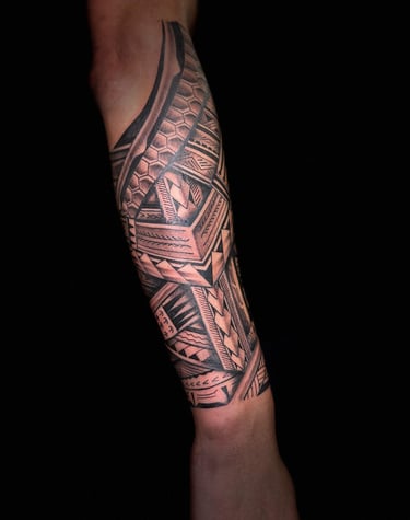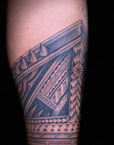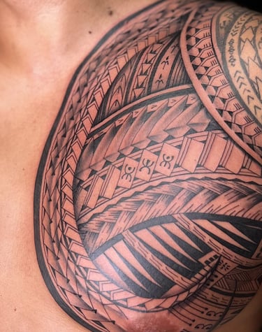 Parmi les différents motifs, les tatouages polynésiens se distinguent par leurs motifs géométriques, leurs lignes fluides et leurs ombrages qui apportent une profondeur et une vision moderne du motif.